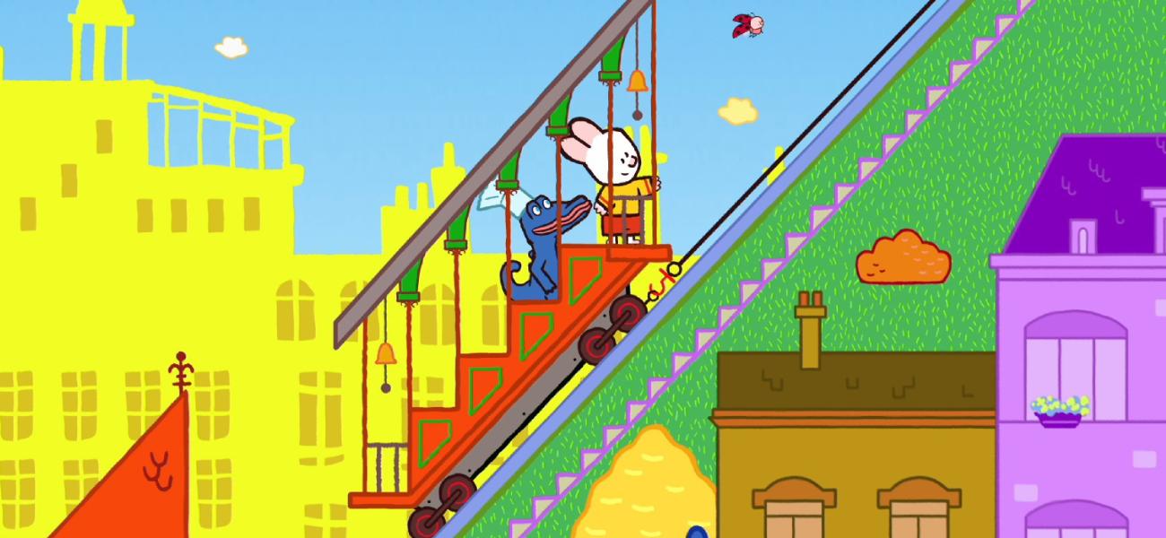 Didou and Yoko are walking in the city. They meet Chef Croco who has a restaurant on top of a hill, but it's so high that nobody wants to go there. Didou will build a funicular to transport the customers to the restaurant.