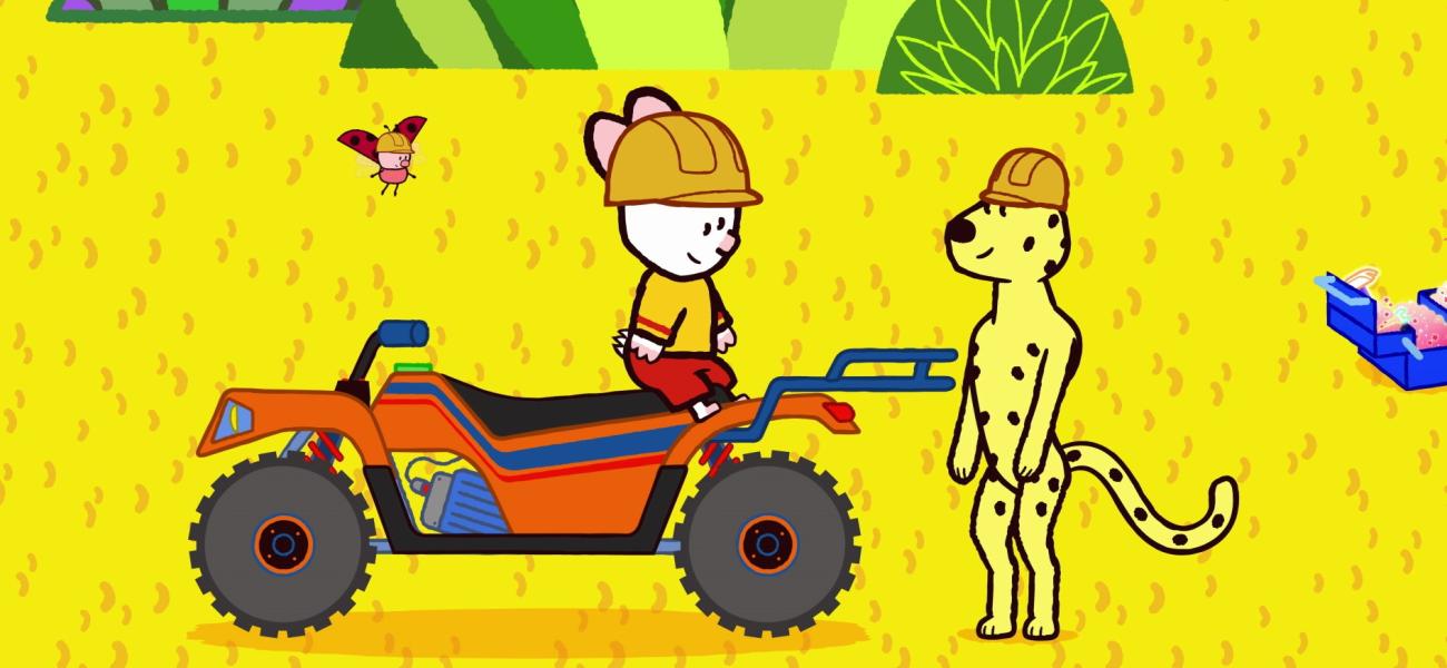 Didou and Yoko are walking in the desert and meet Mr. Cheetah. He carries a statue but it becomes too heavy for him. Didou will build a quad so that Mr. Cheetah can take his statue to the museum.
