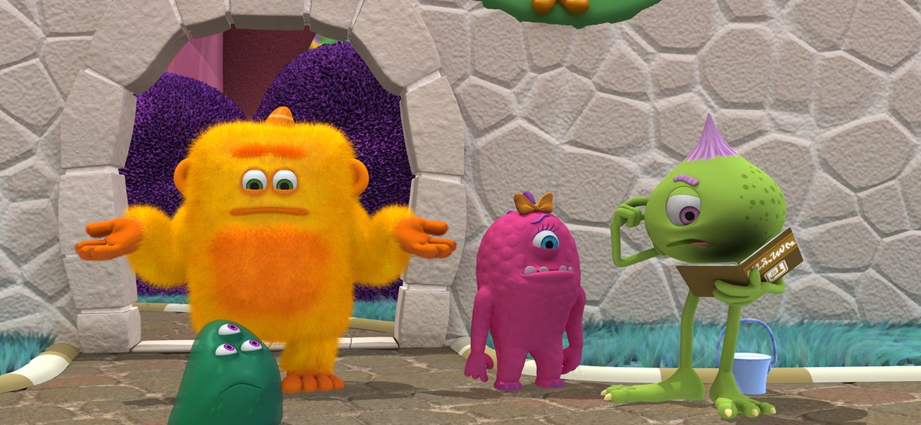 Concept: top and bottom. The monsters help Mr. Stinky Feet Monster to find his foot bath ingredients. They use positional words, such as TOP and BOTTOM, to describe where the ingredients are, teaching the students spatial relationships and movements.
