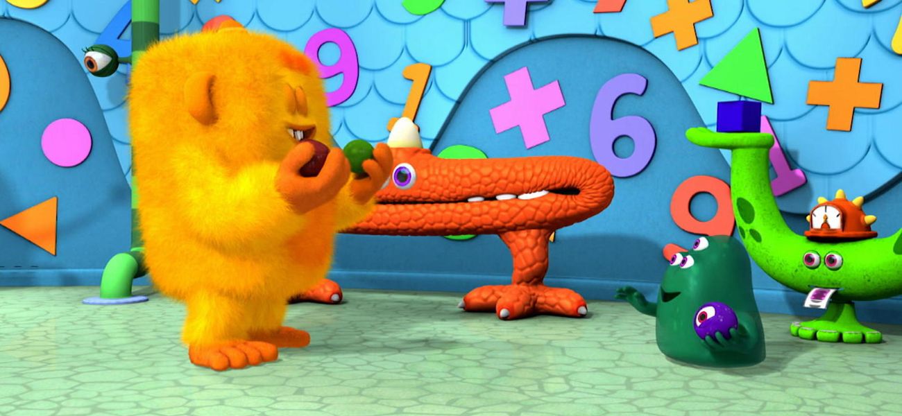 Concept: subtracting. Mini-monsters would love to take a ride on the Monstro-Carousel all together, but for some as yet unknown reason, Uncle Gloup is unable to open the barrier that gives access to the ride. The math monsters realize that there are too many mini-monsters in the boarding area. They therefore subtracted the number of excess mini-monsters which formed a second group.