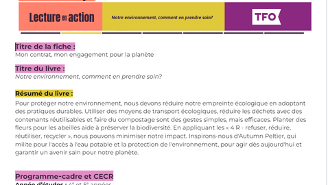 Lecture en action - Notre environnement, comment en prendre soin?