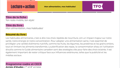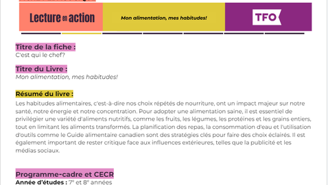 Lecture en action - Mon alimentation, mes habitudes!