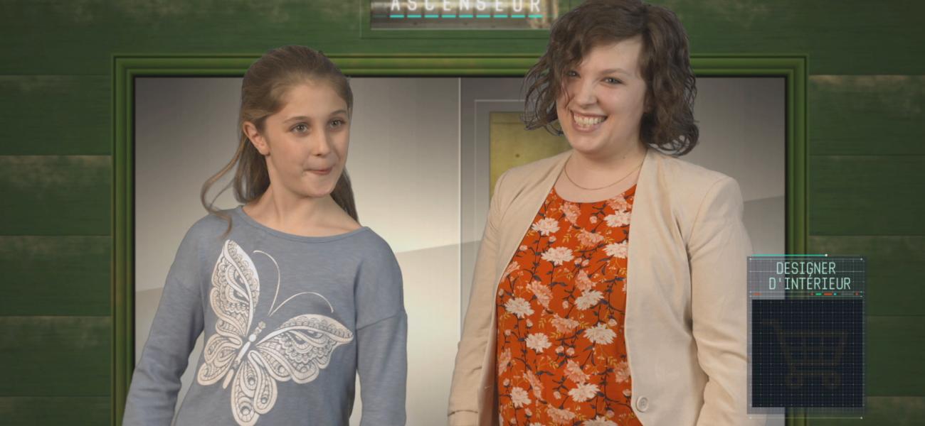Le temps d'une montée en ascenseur, Émilie Lavoie doit 'pitcher' les caractéristiques de son métier de designer d'intérieur à Anne-Sophie pour la convaincre qu'il s'agit bien d'un emploi intéressant!