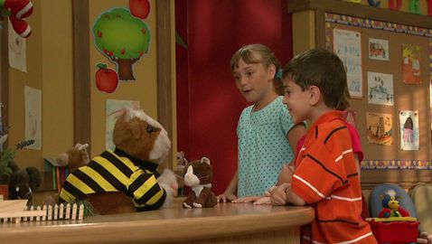 Dans cette émission, Carmen pose la devinette d'une marionnette à Pomme-Pomme. Les enfants rencontrent une marionnettiste et apprennent des techniques de base de manipulation d'une marionnette. Ils présentent aussi un petit spectacle pour Carmen. Les enfants chantent avec Carmen « Ma marionnette fait ce que je dis » et jouent avec différents types de marionnettes. À la fin, Carmen lit aux enfants l'histoire : « Moumou la moufette » pour développer la conscience des phonèmes « ette, ou ».