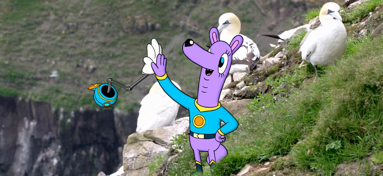 Zamzoom et Orbie se posent à Cap Sainte-Marie en Nouvelle-Écosse, afin de rencontrer les fous de Bassan. Ces oiseaux qui vivent sur les falaises montrent aux visiteurs comment ils plongent depuis les falaises dans les eaux profondes pour chasser.