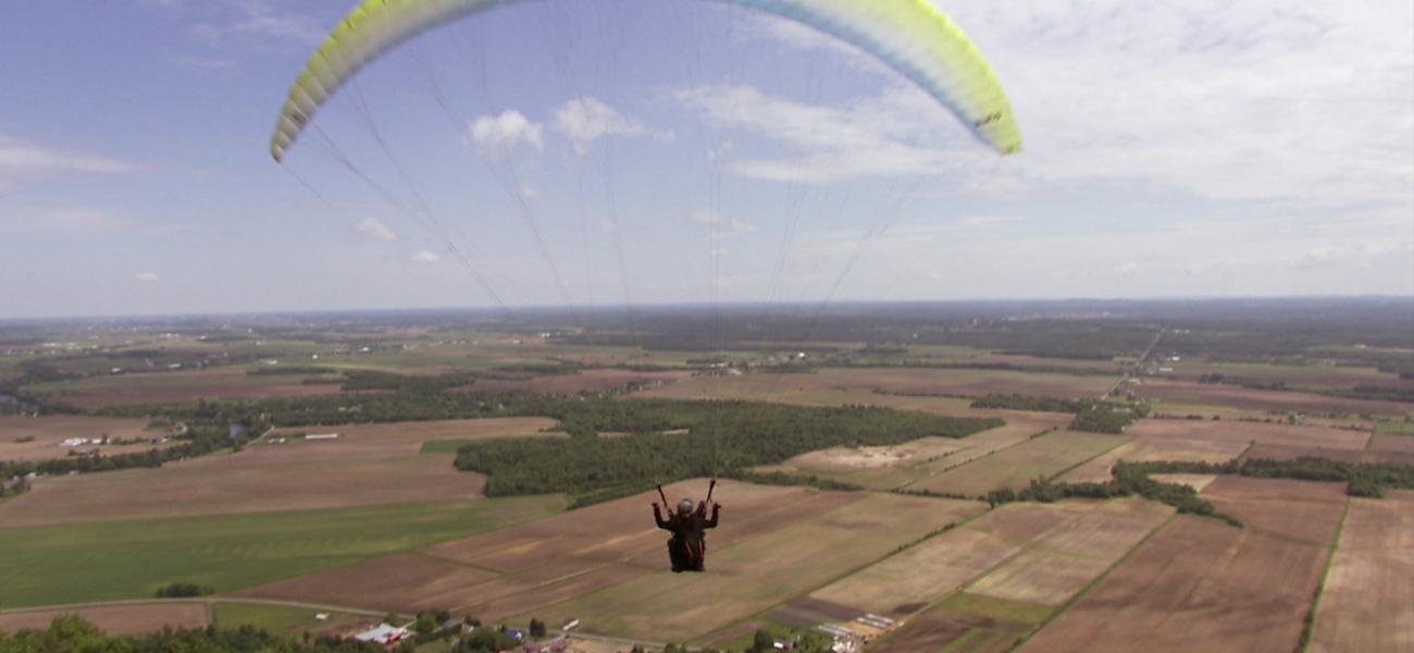 Gabrielle apprend à voler comme un oiseau aujourd’hui! Vincent Vaillancourt, un grand spécialiste du vol en parapente lui donne des conseils pour son premier vol.