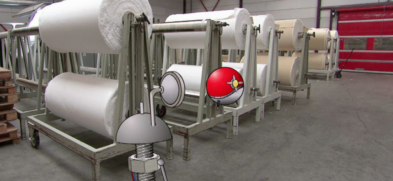 Pat et Bibi découvrent que pour faire du tissu, ça prend beaucoup de fils que l'on tisse un à un avec un métier à tisser.