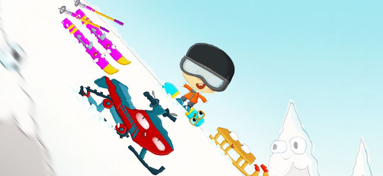 Henri rencontre un snowboard dont le snowboarder s'est tordu la chevile. Henri vient à la rescousse.