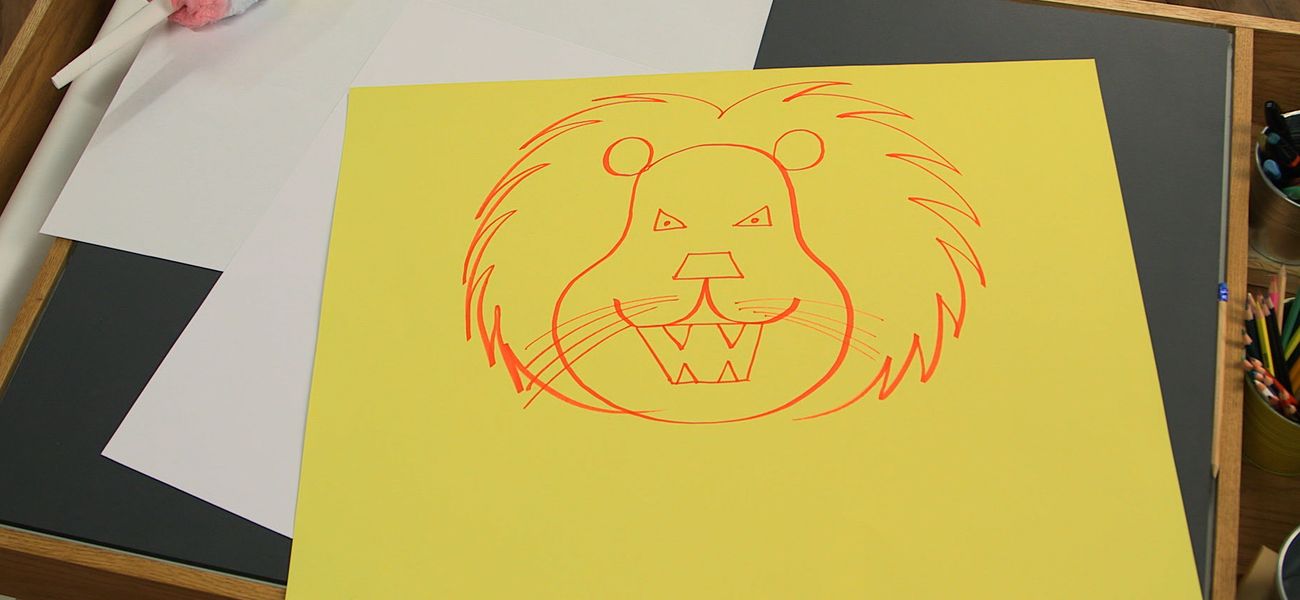 Comment dessiner un lion? Tristan s’inspire de la forme d’un trapèze pour dessiner un lion.
