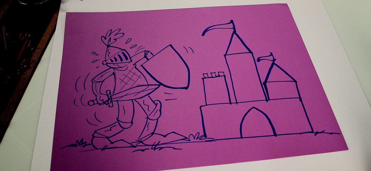 Comment dessiner un château? Tristan s’inspire des formes de boîtes en carton et de formes géométriques pour dessiner un château.