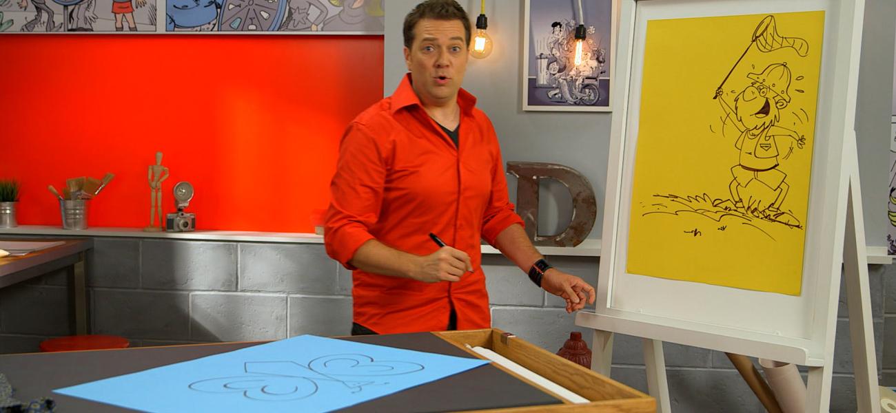 Tristan se sert de la forme d’une cravate et de formes géométriques pour dessiner un papillon.