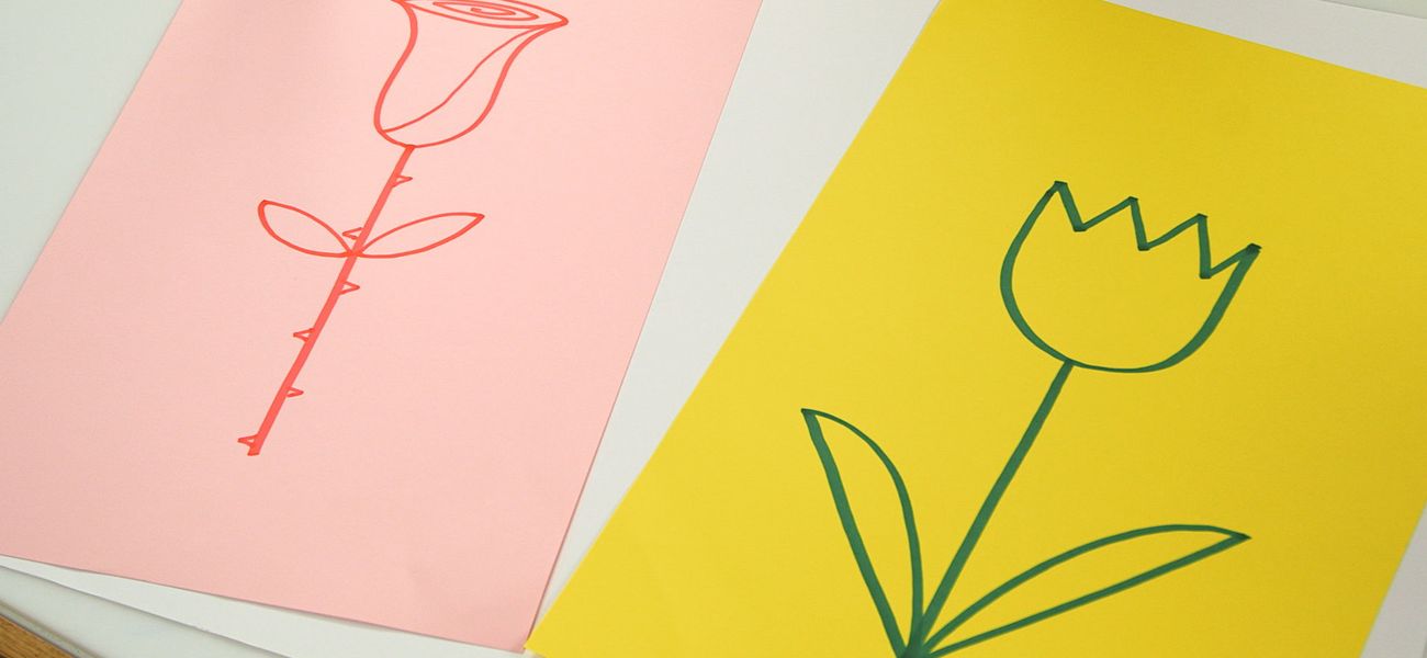 Tristan se sert de formes géométriques pour dessiner des fleurs.