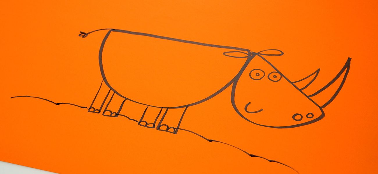 Tristan nous montre comment on dessine un rhinocéros à partir d'une tranche d'orange.