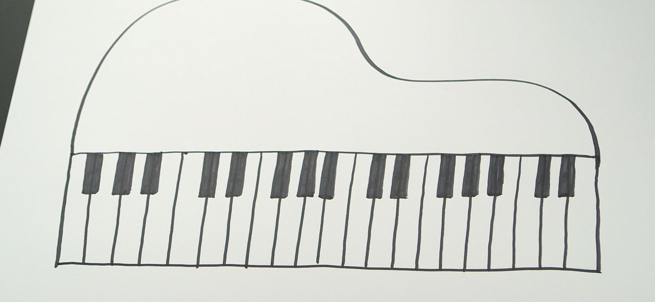Tristan se sert de formes géométriques pour dessiner le clavier d’un piano.