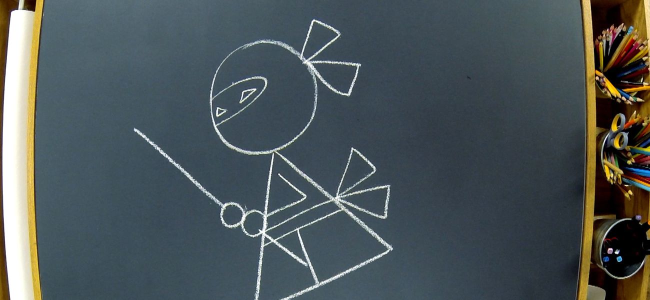 Comment faire pour dessiner une chauve-souris en utilisant la lettre « A » à l’envers? Tristan se sert de la lettre « A » à l’envers et de formes géométriques pour dessiner une chauve-souris.