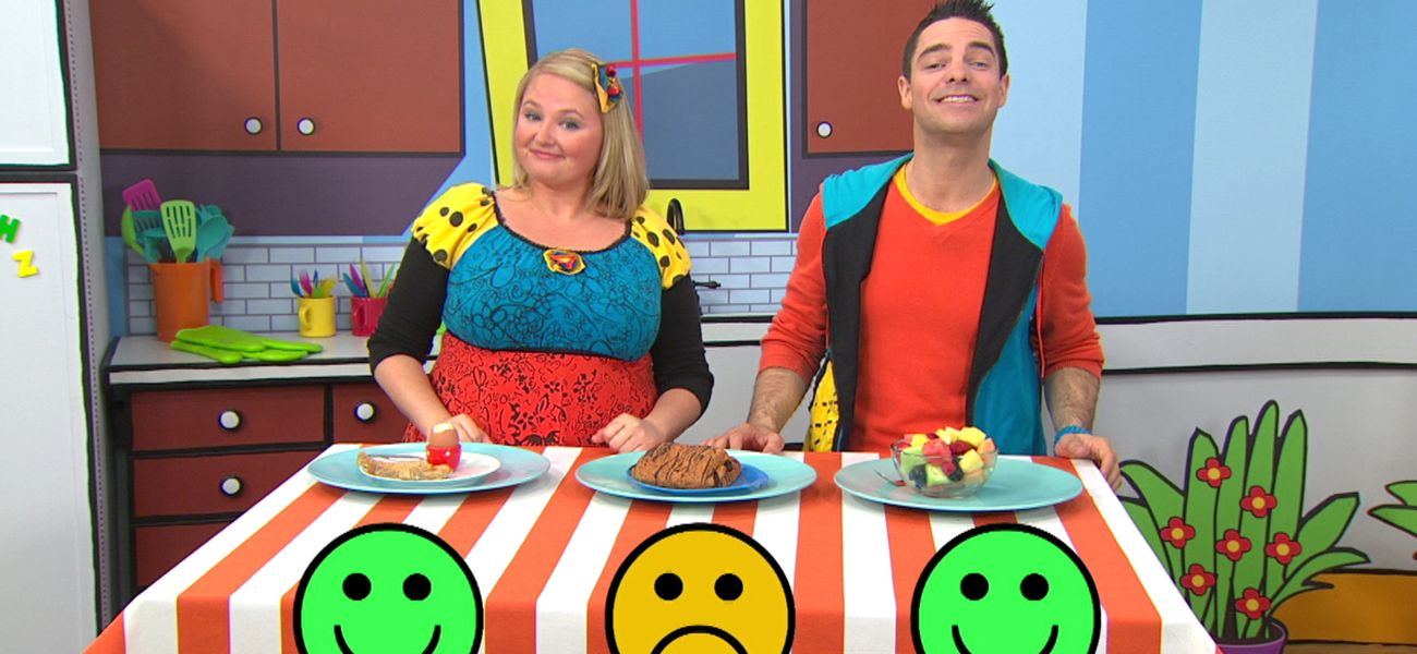 Louis et Josée découvrent si les oeufs, les pains aux chocolats et la salade de fruits sont des aliments bons, ou moins bons pour la santé.