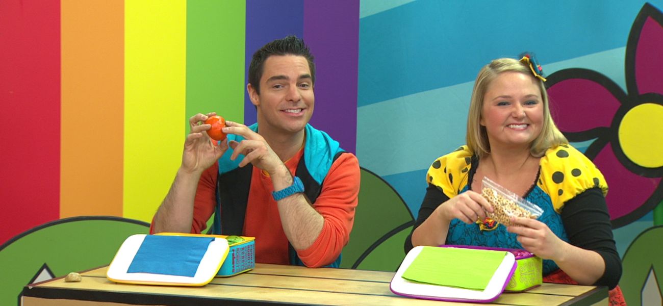 Louis et Josée découvrent des collations santé. Ils découvrent une clémentine et des céréales dans leurs boîtes à goûter.