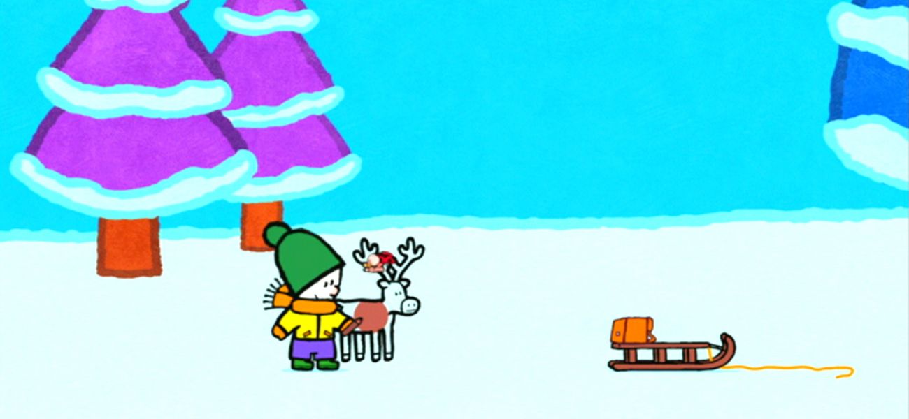 Yoko ne veut pas finir en coccinelle glacée. Didou lui dessine un renne qui va tirer la luge. Mais avant, il doit vérifier le matériel.