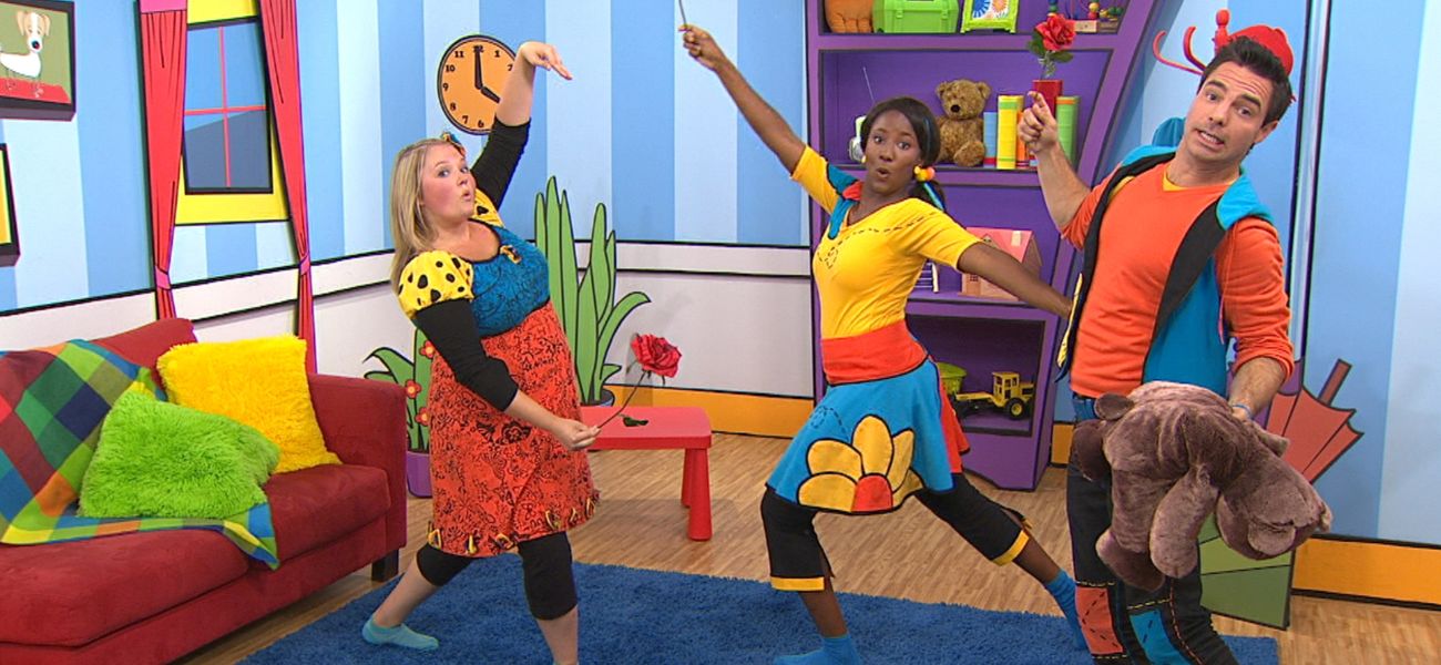 Josée, Lexie et Louis encouragent les élèves à danser avec eux ainsi qu?à faire la statue lorsque la musique arrête.
