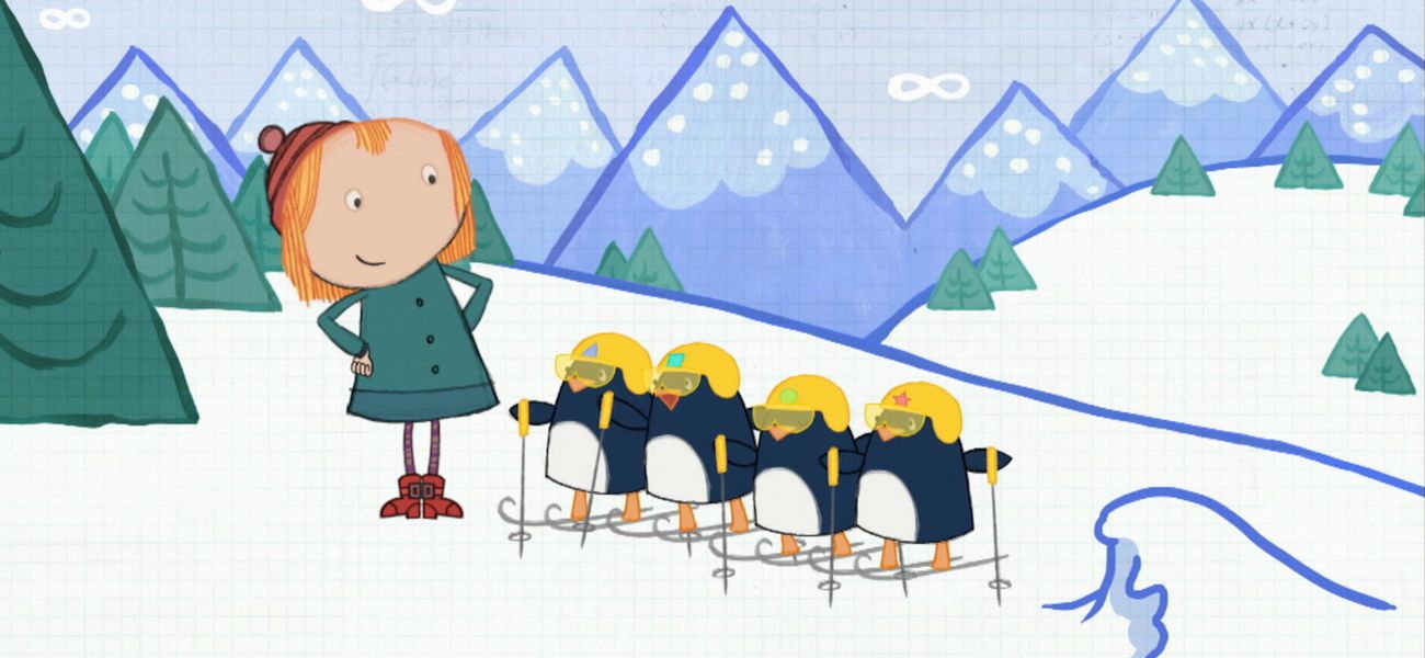 Peg et Chat sont au Pôle Sud pour voir les athlètes des jeux olympiques. Les manchots devront apprendre à contourner les obstacles en passant par-dessus, dessous et entre.