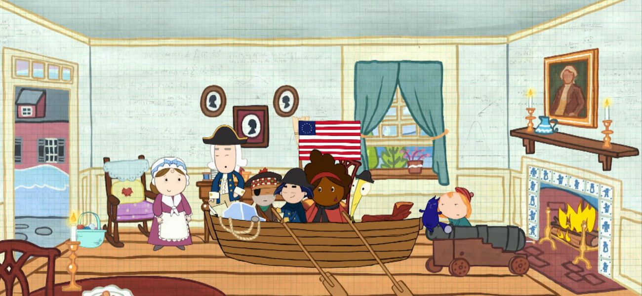 Peg et Chat aident George Washington et sa courageuse équipe à trouver leur chemin grâce à une carte.