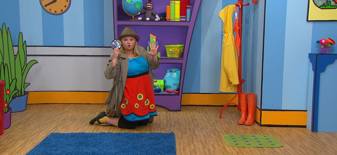 Josée, agente secrète, mesure deux tapis à l'aide de sa loupe pour savoir lequel est le plus long.