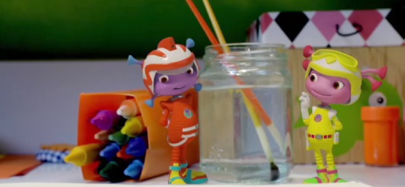 Les floogals découvrent la peinture et reproduisent un dessin. Sergeant Boomer est le floogal de la situation. Il manque un ciel bleu et il faut rajouter du jaune sur le soleil.