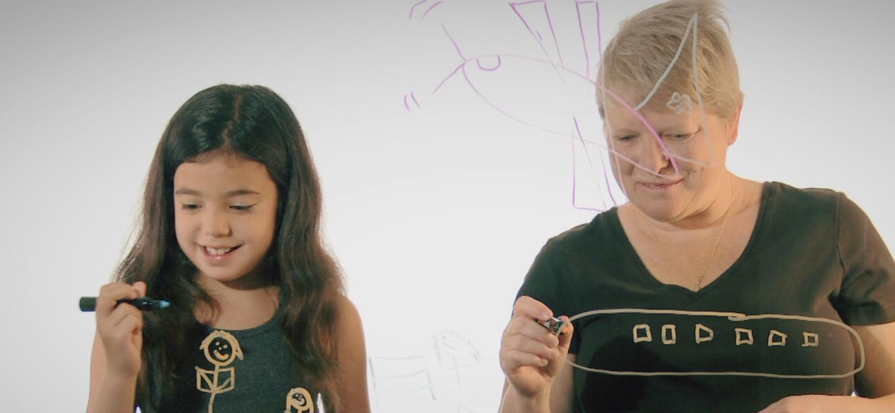 ·Sophie et sa mamie Louise dessinent un souvenir qu'elles partagent, une chasse au trésor au musée, et racontent l'événement.