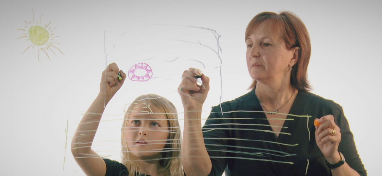 ·Sophia et sa mamie Diane dessinent un souvenir que'elles partagent, nager dans la piscine, et racontent l'événement.
