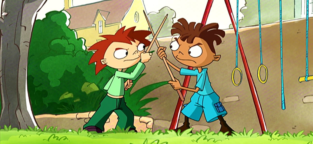 Pour son anniversaire Lucas joue au foot avec ses copains sous la surveillance de Célestin qui arbitre. Un penalty raté, ayant failli renverser la table du goûter et écraser les fleurs, Lucas décide d'utiliser le portail comme but. Mal lui en prend surtout lorsqu'un tir détourné propulse son ballon tout neuf dans la rue. Lucas se précipite derrière sans regarder pour le rattraper. Célestin évite in extremis qu'une voiture ne le renverse, et lui montre ce qu'il aurait dû faire. La rue n'est pas un terrain de jeux.