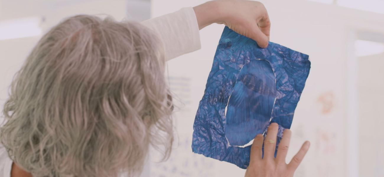 En froissant le papier, Hervé Tullet joue avec le temps et les formes et leur donne une histoire.