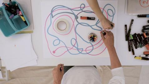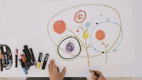 Hervé Tullet fait vibrer les taches de couleur en les perçant, les trouant et en les rendant mobiles.