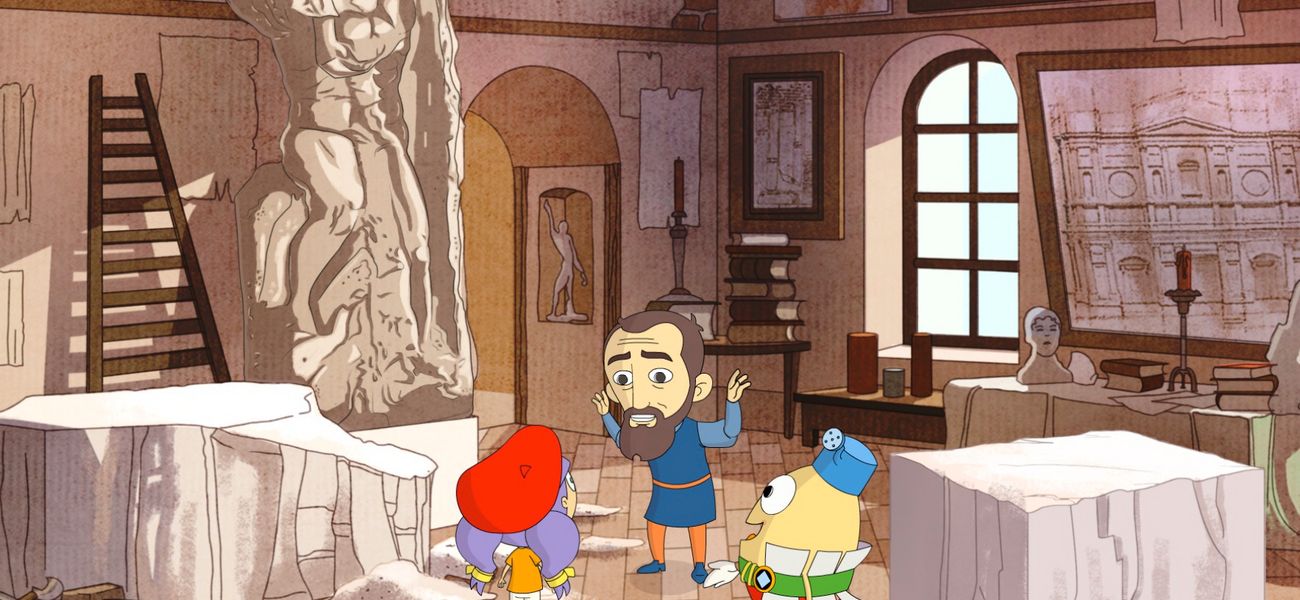Mati et Dada découvrent comment Michel-Ange était un excellent sculpteur et comment une sculpture inachevée ('non finito') peut sembler vivante!