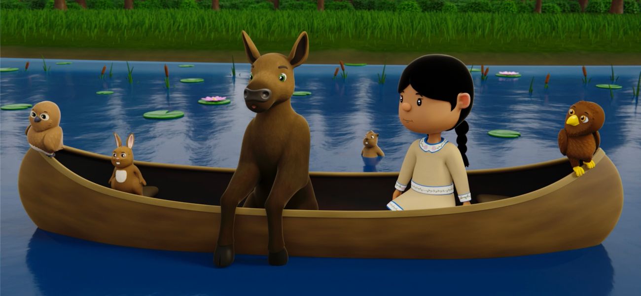 Les copains rencontrent un orignal qui veut apprendre les cris d'animaux pour participer au festival du bois d'orignal.