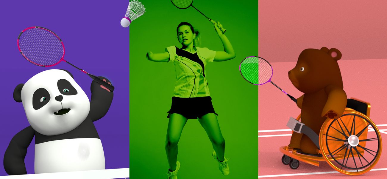 Lilou Bambou, Ours Polaire, Ours Brun et Canard démontrent les différences entre le badminton classique et le parabadminton.