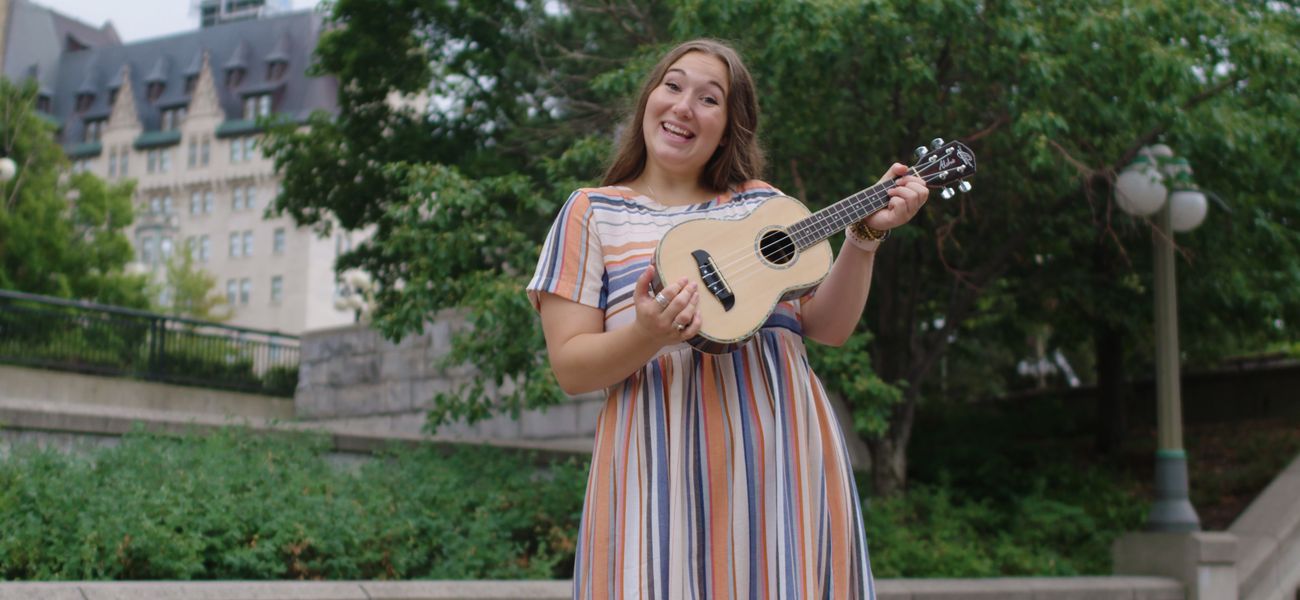 Découvrez la lettre U autour d'Ottawa avec : un ukulélé, des ustensiles, un uniforme et un urubu.
