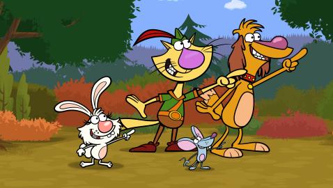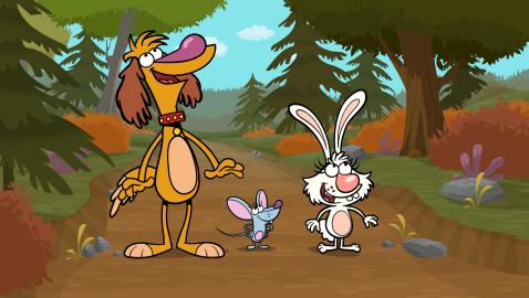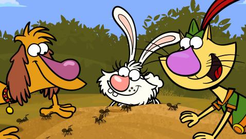 Félibert et ses amis suivent les empreintes d'animaux pour trouver celui qui a volé un morceau de la statue de Félibert.