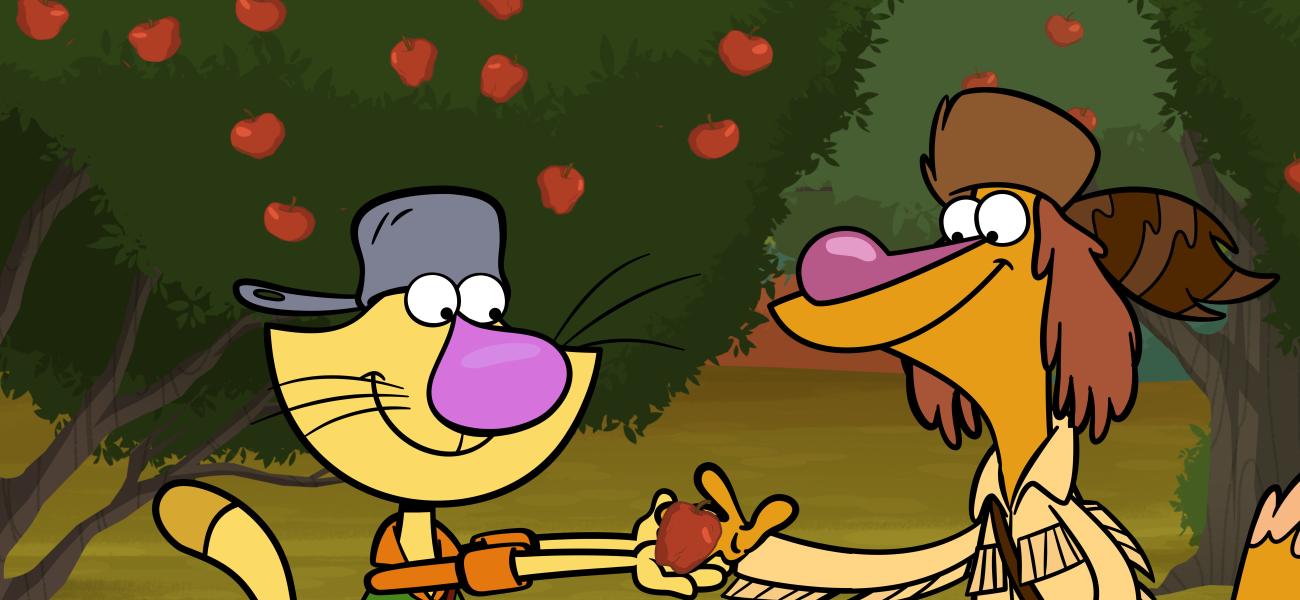 Félibert et ses amis découvrent l'origine des pommes et le travail important des abeilles dans la pollinisation.