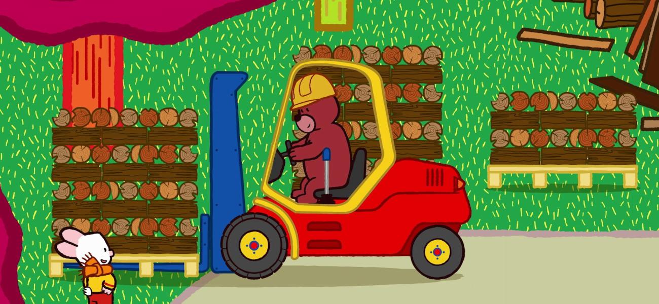 Didou et Yoko veulent aller chercher du bois mais monsieur Ours n'arrive pas à porter assez de bois en même temps pour remplir toutes les voitures assez vite. Didou va construire un chariot élévateur pour que monsieur Ours puisse porter tout le bois de chaque client d'un seul coup.
