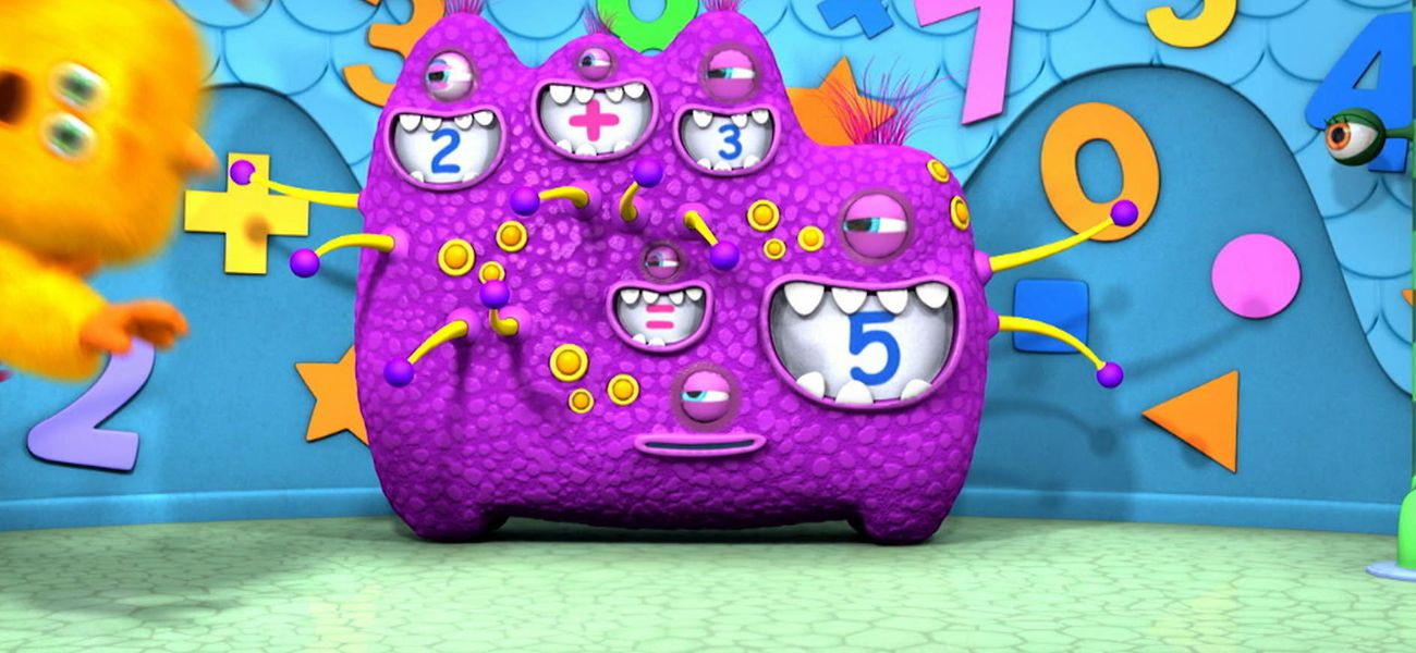 Concept abordé : compter par deux (dénombrement). Le Monstre-Fait-Tout a fabriqué une grande quantité de jouets pour un client. Il doit les emballer rapidement et efficacement. Il ne peut y arriver seul, il demande l'aide des monstres-maths. Ces derniers trouvent une solution en apprenant à compter les jouets par deux.