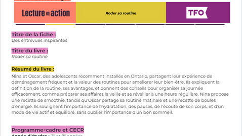 Nina et Oscar, des adolescents récemment installés en Ontario, partagent leur expérience de déménagements fréquents et la valeur des routines pour améliorer leur bien-être. Ils expliquent la définition de la routine, ses avantages, et donnent des conseils pour organiser sa journée efficacement, comme préparer ses affaires la veille et se réveiller à une heure régulière. Nina propose une recette de smoothie, tandis qu'Oscar partage sa routine matinale et une recette de boules d’énergie. Ils soulignent l'importance de l'hydratation, des pauses, de l'écoute de son corps, et d'un mode de vie actif et équilibré, sans oublier l'importance d'un bon sommeil.